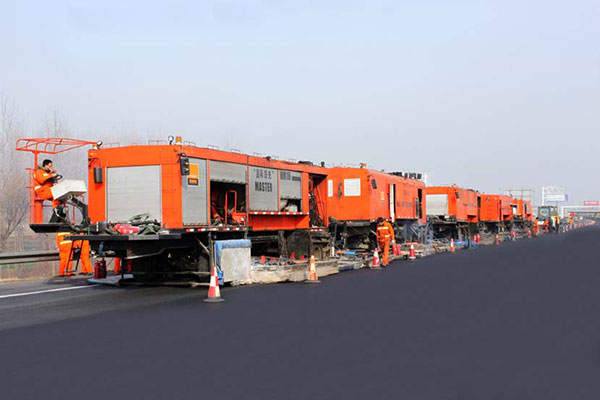 沥青路面就地热再生就是利用沥青路面热再生联合机组来就地完成沥青路面的热再生修复,施工机组即就地热再生列车,通常由多台路面加热机、一台铣刨复拌机、各型压路机组成。该工艺具备对原有路面材料100%地利用,减少环境污染;可以快速就地再生,对交通干扰小等优点,是一种针对沥青路面浅层病害修复的预防性养护技术。